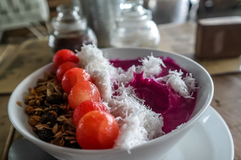 This past February, when we found ourselves in the perennially Instagram-able enclave of Bali called Canggu, we were among restaurants and cafes hawking this very thing. Our very first morning in town, sweating profusely in the early day humidity, we walked down to Crate Cafe, an industrial, open-air cafe/chic retail store. Maybe it was the heat, or proof of our utter inability to resist peer pressure, but we promptly ordered a smoothie bowl. And, just like that, we were hooked. It was visually stunning, of course, but also delicious and filling, in the feeling-good-about-your-life-choices way.