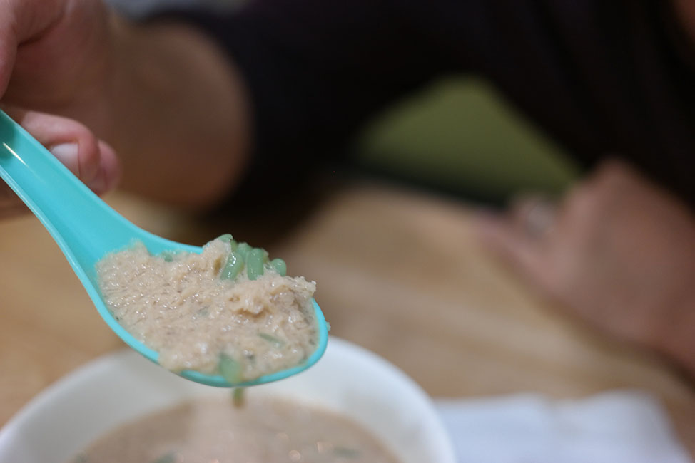 In actuality, this dessert was quite tasty, if you just closed your eyes. What looked like a weird experiment I would have made in the kitchen as a toddler is actually chendul, a shaved ice treat mixed with coconut milk, palm sugar syrup, and green noodles flavored with pandan leaves and made with palm flour. The noodles clearly look like worms, and the vivid green color does not help. This particular bowl was coffee flavored.