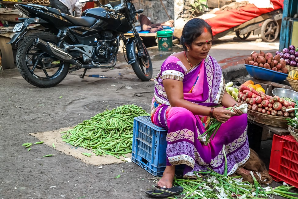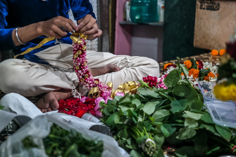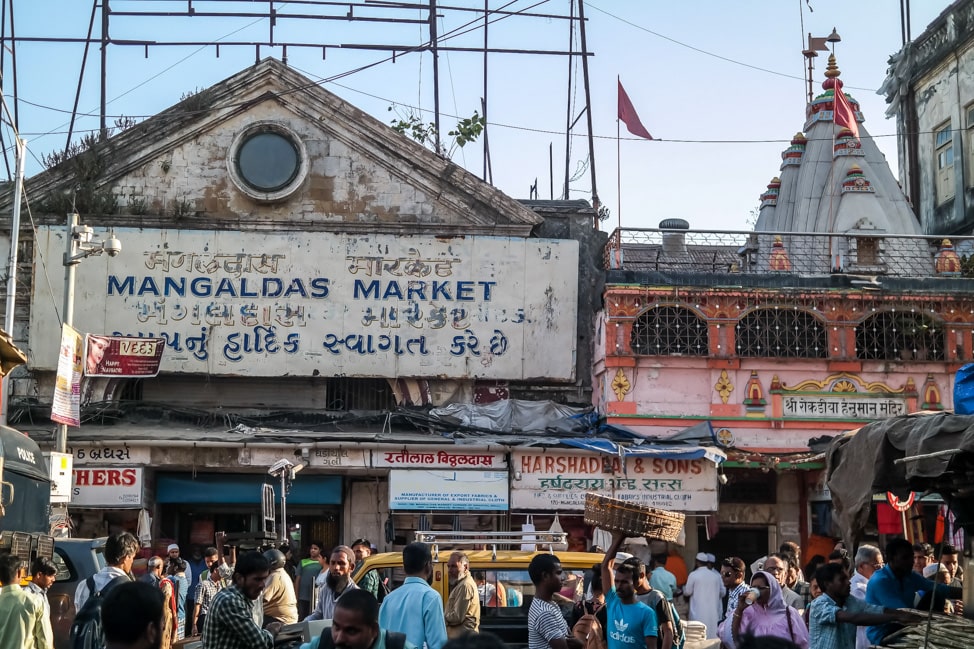 My Markets & Temples tour was a walking tour that made stops at Crawford Market, Mangaldas Market, Mumbadevi Temple, Flower Alley and ended at an amazing urban cow sanctuary. As we meandered around the bustling markets, we visited a spice stall, slowly smelled our way around fruit stalls, watched buyers and sellers hard at work in the fabric markets, got an education on jewelry at the gold market and gaped at artists in Flower Alley as they made offerings and decorations.