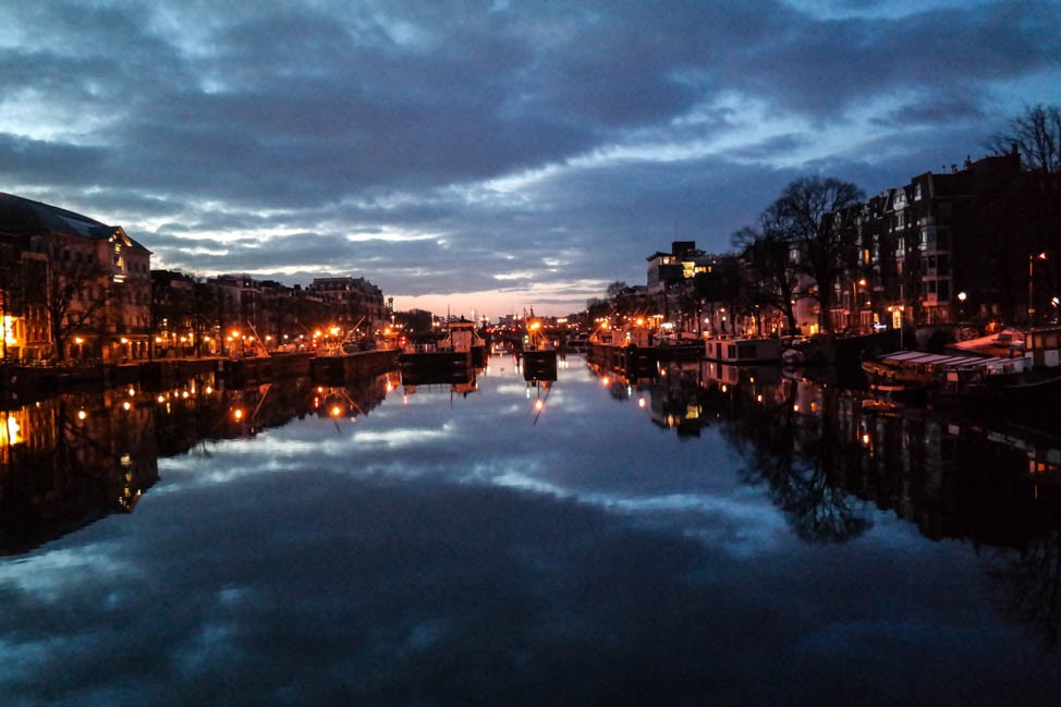 While the sky threatened rain and snow we spent an hour taking one of Amsterdam’s many canal cruises, an activity I’ve decided is not the tourist trap I once thought. Instead I learned a ton about the city including the fact that many homes here are built on a precarious bed of wood pilings that shift all the time. The inevitable question of insuring such a home hovered in my mind as we spun around the canals, taking pictures of grey on grey.