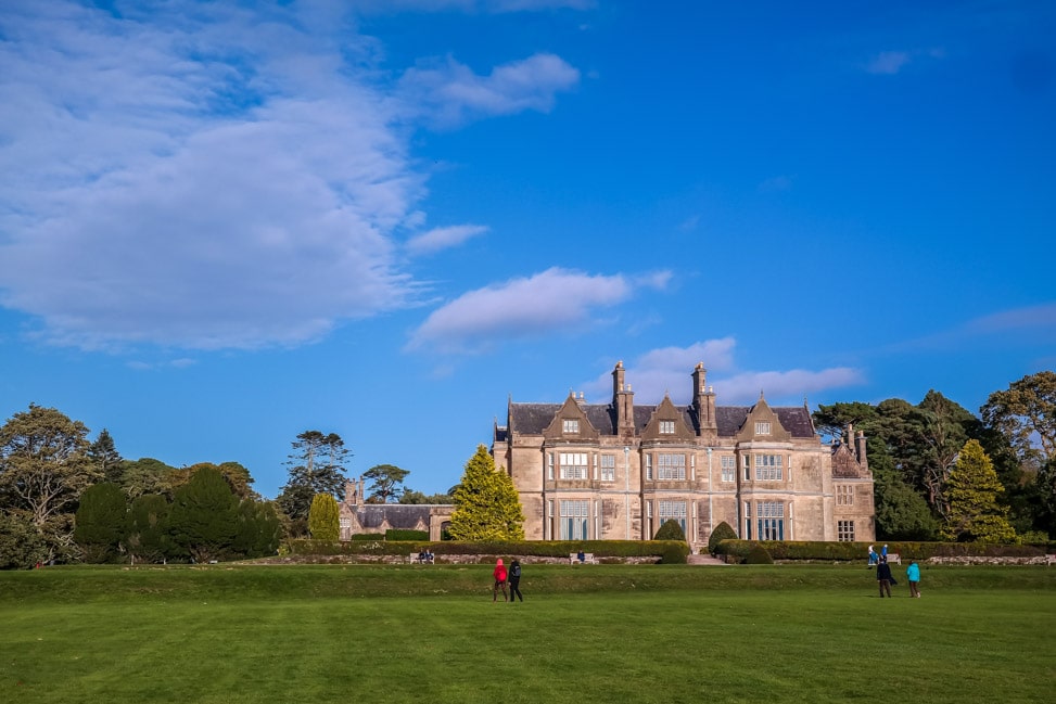 There are wide variety of short, easy walks, as well as more arduous hikes up the steep hills around the park. We opted for a leisurely stroll along the lake around Muckross House, and it was perfect. There were few people on the paths, and the views around the lake and surrounding hills were amazing. We had assumed that Muckross House would be a rustic old home of some sort of significance. We were wrong. As we emerged from the woods on our walking path, we were met by an imposing stone estate, with acres of perfectly manicured lawn and gardens.