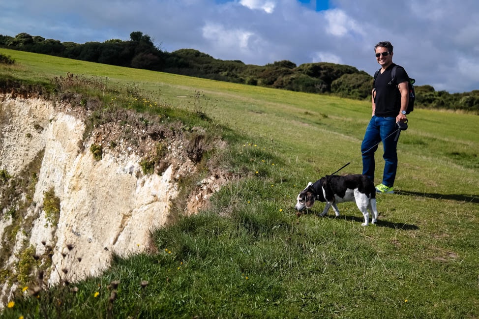 For this visit, we brought Basil with us, to broaden his doggie horizons, and save us arranging for a dog sitter. We spent the better part of a day driving out to Old Harry Rocks, chalk formations that are the easterly point of the ‘Jurassic Coast’ and also a UNESCO World Heritage Site.