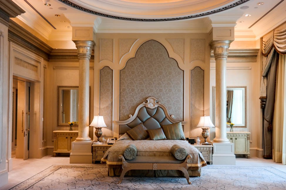The icing on the luxury hotel cake, so to speak, was a tour around the Emirates Palace, Abu Dhabi’s grandest hotel, home to visiting dignitaries and celebrities. We got to peek into an empty suite – one of the higher end rooms, but not on the 8th floor, where ‘you’re only allowed if you’re president.’ I’ve literally never in my life seen a bigger bedroom or bathroom. Every detail was ready for its close-up, with perfectly coiffed accessories and multiple chandeliers and Indian silk walls.