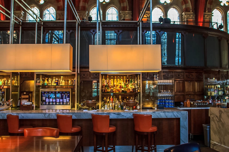 The drinks are very expensive, but the atmosphere and setting are totally worth it. Located just off the Eurostar platform, The Booking Office is the original ticket office for the train station, cleverly converted into a sleek bar. The lighting is dim and the dark wooden furniture is comfortable, making it an ideal stop for a martini or bottle of wine.