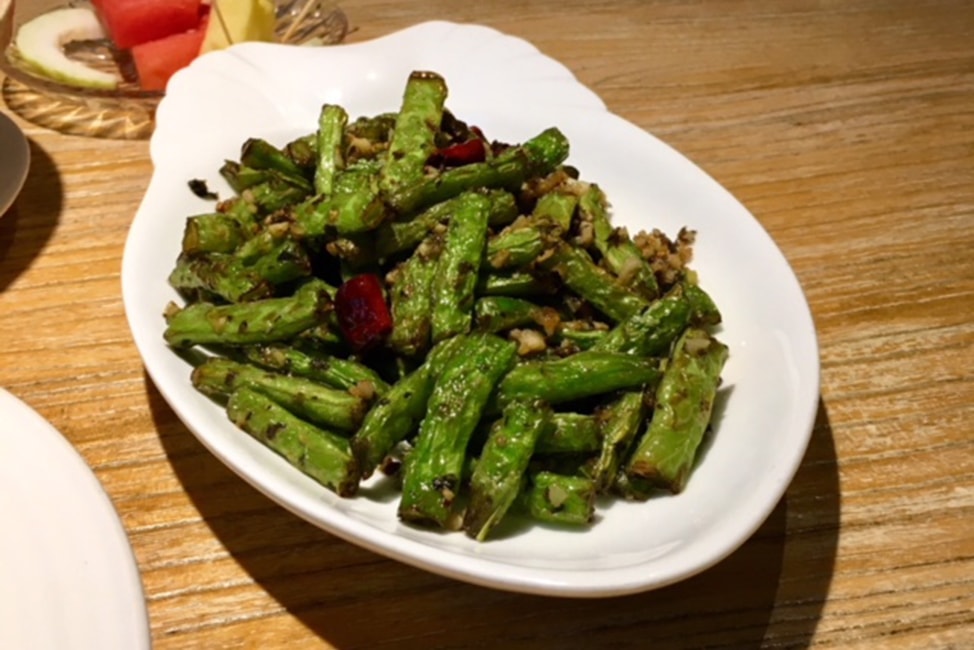 Dry-Fried Green Beans: This may seem random, but this has been one of our favorite dishes we’ve discovered in China. It is a classic Sichuan dish, consisting of green beans fried in oil, then tossed with chiles, pickled mustard stems, and a little sugar. We seek out Sichuan restaurants for the sheer pleasure of having this dish, and we are probably ruined forever, because boring old green beans just won’t do (sorry for the blurry phone photo below…).