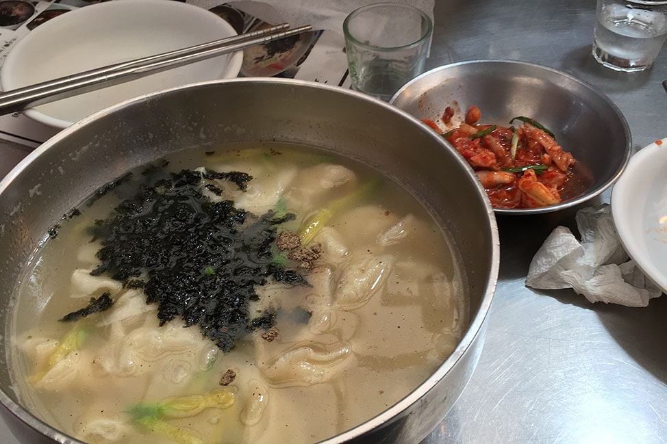 Within a few minutes, Yoosun Cho was handing me a bowl of hand-torn noodles in broth with a side of her kimchi. It was going to be a good day.