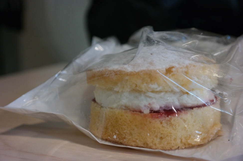Victoria sponge cake is simple but delicious. Classic British cake with a layer of jam, served with afternoon tea and sold at most bakeries. Even Starbucks and Costa sells them.
